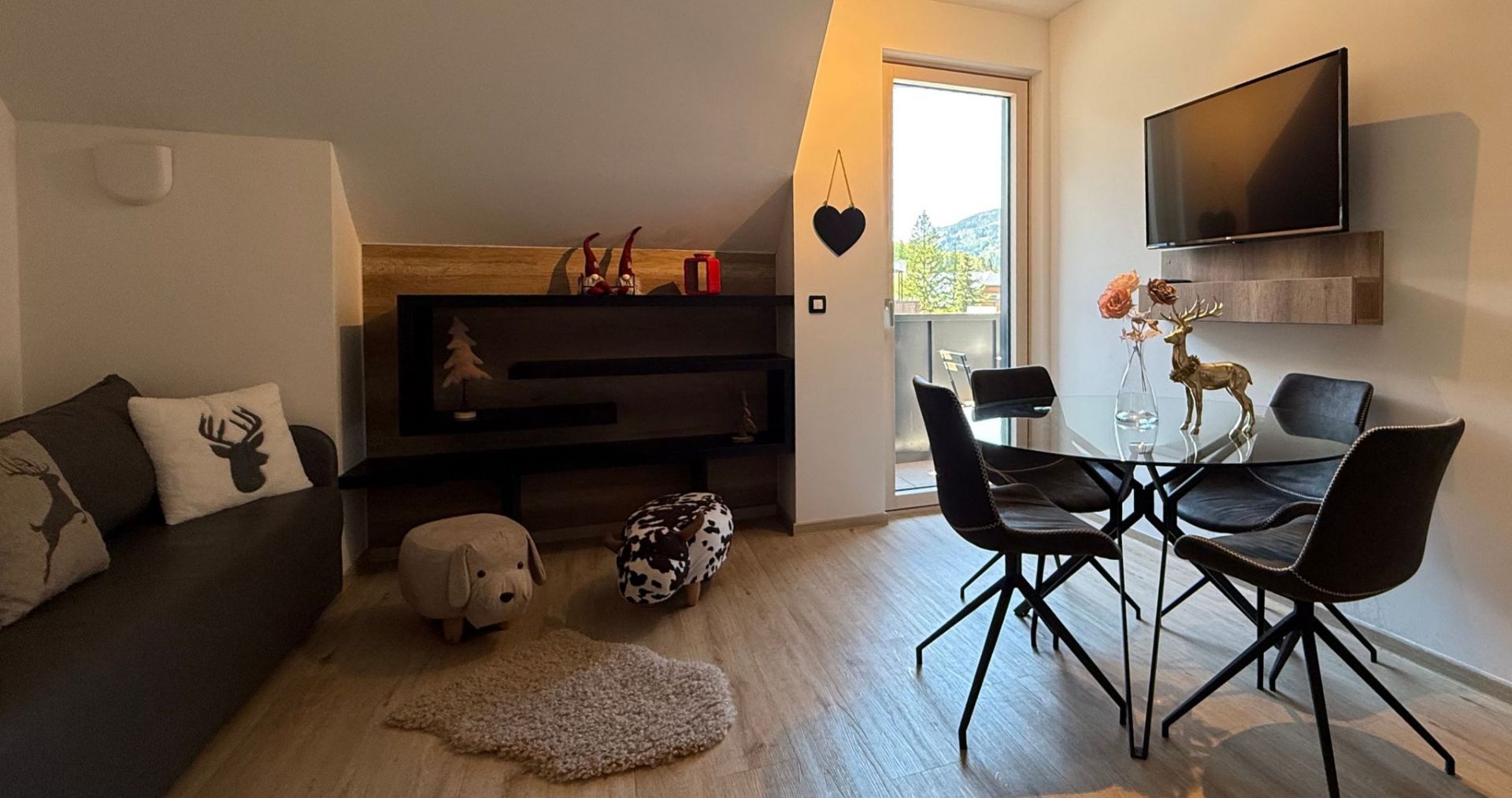 Naši skrbno zasnovani apartmaji so kot ustvarjeni za pare, družine ali prijatelje, ki si želijo sproščenega in prijetnega oddiha sredi gorske pravljice. Večja enota sprejme tudi do šest oseb, vsak apartma pa ponuja zasebno garažno parkirišče, priročno shrambo za športno opremo, grelce za smučarske čevlje ter neposreden dostop do smučišča na prestižni SKI IN&OUT lokaciji. Vse za brezskrbne trenutke in lahkotno raziskovanje gorske pokrajine.
